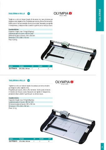TAGLIERINA A RULLO A2 Capacità di taglio: max 15 fogli (80gr/mq)